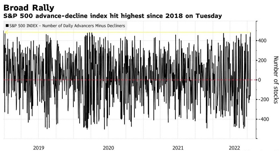 標普500指數的所有板塊週二都在上漲,其中7個上漲超過3%,整個標普500指數中只有9隻股票下跌。 美國銀行(33.360.01, 0.03%, )最新的基金經理調查顯示,企業業績向好,以及投資者將風險資產敞口降至即使在全球金融危機期間也未見過的低水準,但該行的多空指標處於「最大程度看跌」水準, 表明未來形勢可能出現轉機,否極泰來,這也提振了市場風險情緒。