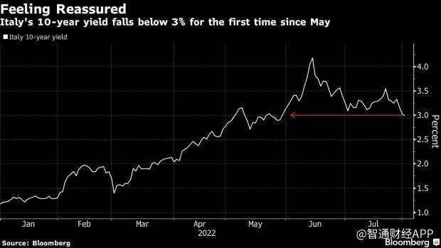 意大利10年期國債收益率跌破3% 爲5月以來首次