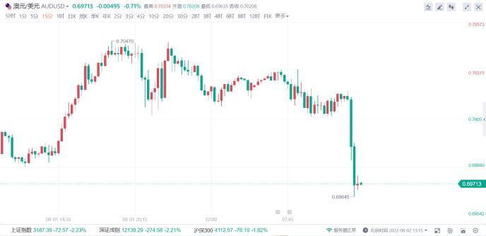 在日期:今天中午12:30的8月會議上,澳洲聯儲加息50個基點,將澳洲政策利率上調至至1.85%,符合市場預期。 而這是澳洲聯儲今年的連續第3次加息50個基點。 澳元兌美元持續下挫,已跌破0.70。 澳大利亞3年期國債收益率抹去漲幅。