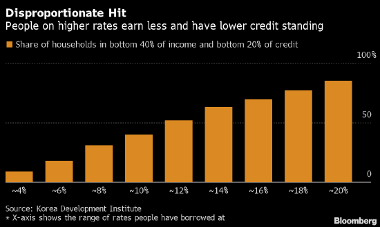 銀行已經開始限制放貸。 根據韓國央行的數據,4月份銀行對家庭的貸款增速從1月的6.2%放緩至2.8%。