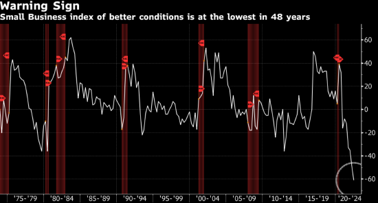 就業依然強勁,崗位充足,工資上漲,這聽起來不像是經濟衰退,但生產部門表現蹣跚。 企業主預計銷售將繼續下滑,更多公司計劃減少庫存。 “這些指標為經濟活動下降提供了非常有力的理由,” Dunkleberg說。