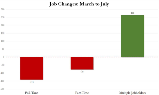 雖然員工總數(家庭調查)停滯不前,但多份工作者人數一直在穩步增長,6月份創下26.3萬人的新高,這與全職工作人員的急劇下降形成了鮮明對比。