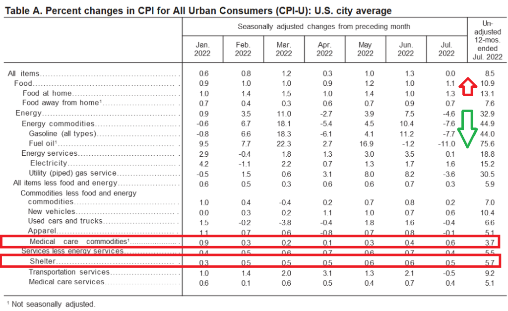 美國勞工統計局數據顯示,7月CPI同比上漲8.5%,好於市場預期的8.7%,前值9.1%。 環比增速從上月的1.2%大幅回落至0%,甚至不及市場0.2%的較低預期。