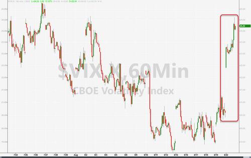 與此同時,隨著市場動蕩加劇,被視為華爾街恐慌指標的Cboe波動率指數VIX一度飆升至了24上方。