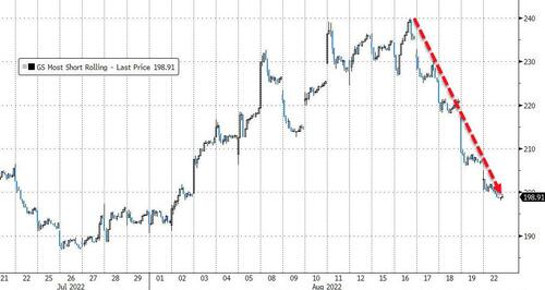 高盛(340.18-2.24, -0.65%, )追蹤的一籃子做空最嚴重的股票相較上週二高點的跌幅,達到了驚人的18%。