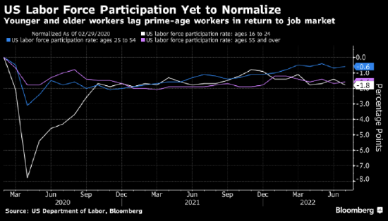 這種情況將與過去的工作力市場形態背離,並成為百年一遇疫情給經濟留下的又一個非同尋常的遺產。 如果進展順利,將令目前正在快速加息以遏制處於幾十年高位的通脹率的美聯儲得以在更長時間里把利率維持在更高水準。