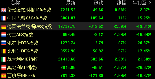 來自歐洲的鋼鐵生產商蒂森克虜伯(5.580.11, 2.01%, )、汽車零部件製造商法雷奧、化工巨頭巴斯夫(10.38-0.12, -1.14%, )、水泥生產商聖戈班(7.86-0.01, -0.13%, ) 集團和天然氣公用事業巨頭Uniper SE週一在歐洲股市中表現最差。 德國DAX指數由上述行業中的重量級企業所組成,該指數是該地區主要基準指數中表現最差的指數,截至發稿跌2.39%。