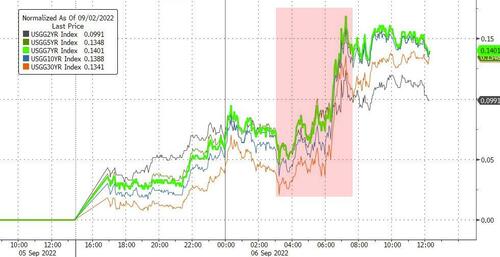 值得一提的是,在隔夜美債價格大幅承壓——各期限收益率普遍出現兩位數基點漲幅的同時,歐洲債市也未能倖免,甚至部分國家債市的拋售力度比美債更為猛烈。