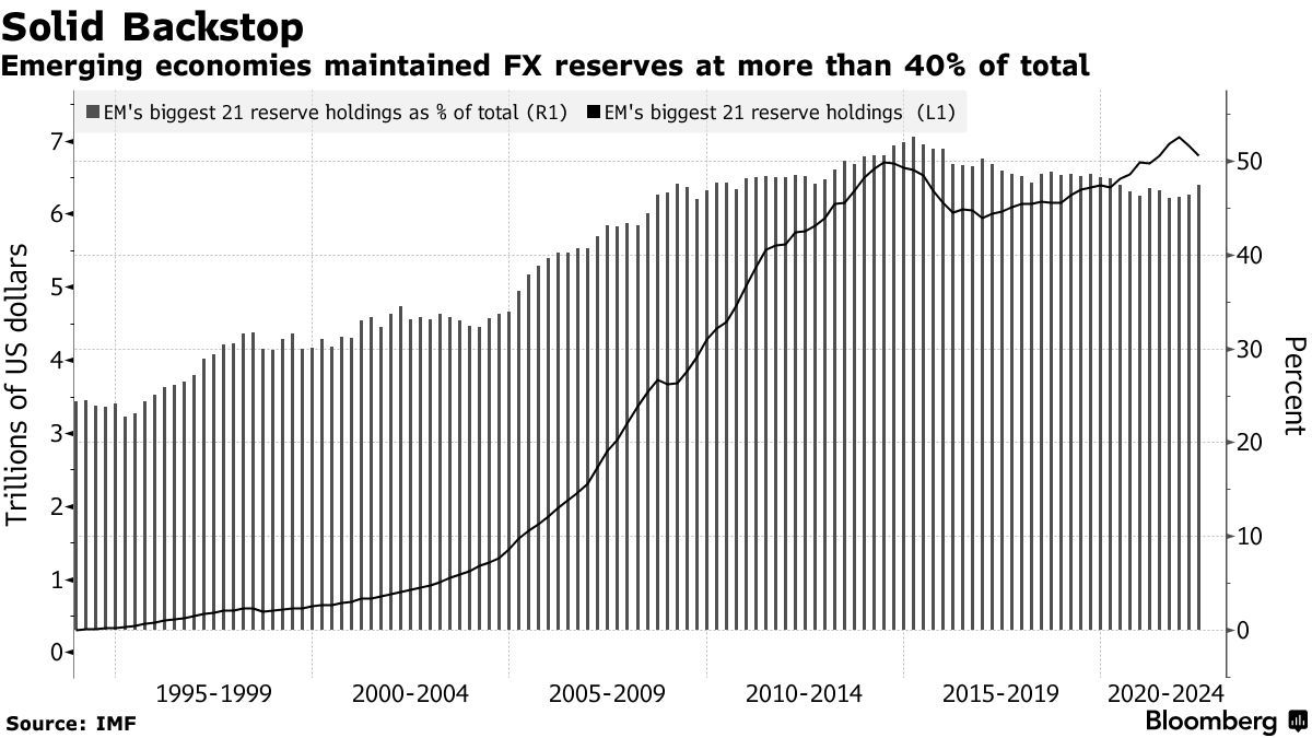 新興經濟體的外匯儲備仍保持在總量的40%以上
