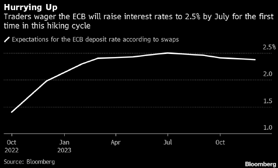 交易員定價歐洲央行存款利率到7月份將升至2.5%