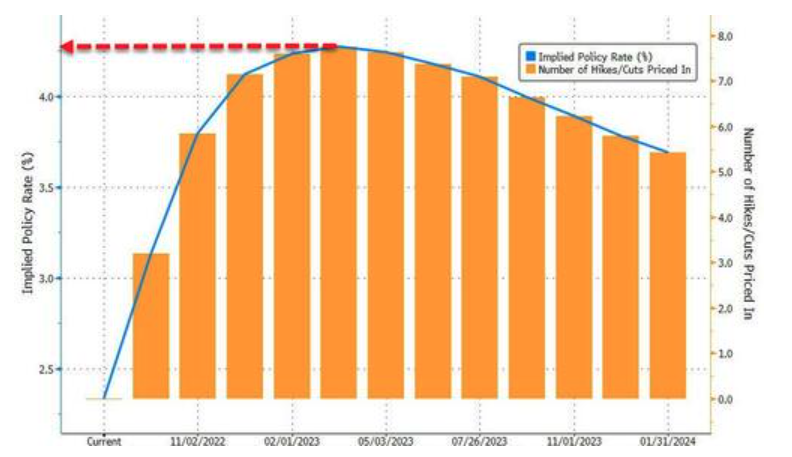 市場最新定價的本輪美聯儲加息的終點為——4.28%,在明年4月。