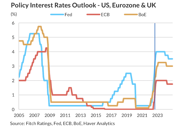 惠譽評級於近期發佈最新《全球經濟展望》報告,將今年全球國內生產總值(GDP)增長預測下修至2.4%,較6月時下調0.5個百分點。 報告稱,受累於歐洲能源危機,通脹愈演愈烈,全球貨幣政策加速收緊,全球經濟在近幾個月遭遇“完美風暴”,預計歐元區於本季步入衰退,美國將在2023年年中陷入溫和衰退,明年上述地區或經歷經濟零增長。