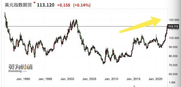 不乏觀點認為,美元指數衝擊前一輪高點120並非不可能,不顧一切抗擊通脹的美聯儲就是最大的推動力。
