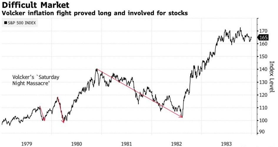 隨著本周美國股市反彈,投資者應該記得,當沃爾克的緊縮政策在1980年開始產生影響、促使其加息步伐短暫放鬆時,標普500指數在大約八個月的時間里反彈了43%。 不過,這種上漲被證明是短暫的,直到1982年中期,股市才開始持續走高。