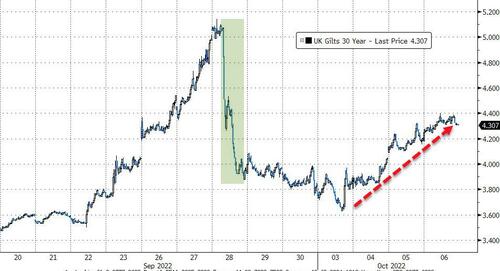 隨著10月14日購債結束日期的臨近,較長期英國國債收益率已經開始攀升。 週四,30年期英國國債收益率上漲17個基點至4.37%,此前英國央行自周一以來首次購買1.54億英鎊國債。 央行承諾在10月14日之前的13天內購買650億英鎊的長期國債。