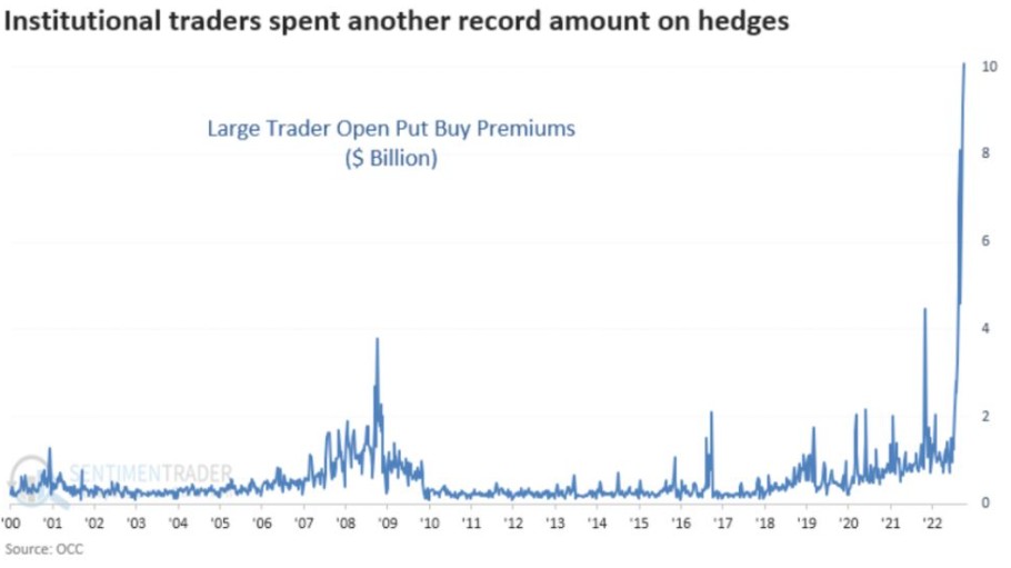 要從期權市場的任何此類行為中辨別出明確的信號幾乎是不可能的。 看跌期權搶購潮可能是為了防範股市進一步下跌,也可能是市場試圖利用大規模波動時出現的異常現象。 但巨大的交易量再次表明,2022年市場的交易方式已開始與近代史上一些最糟糕的時期相媲美。