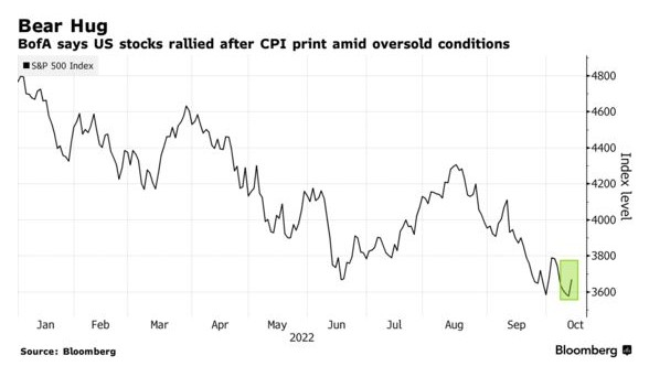 Michael Harnett指出,在超賣、高現金水平和缺乏信貸事件的背景下,美國股市在通脹數據出爐後的周四大反轉,就像一個“熊市反彈”。這是動蕩的一年中的最新進展,今年的特點是人們擔心經濟衰退,美聯儲在控制通脹方面的決心堅定不移。