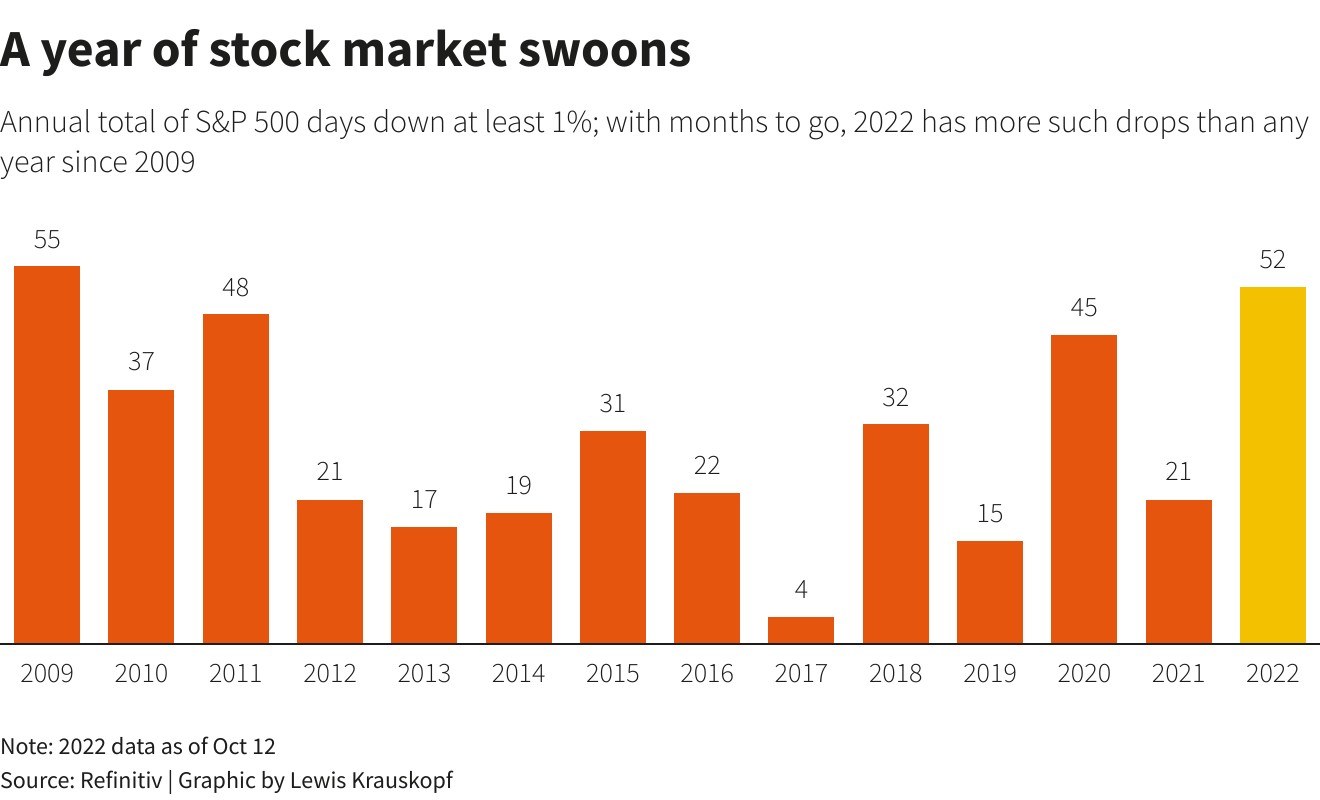 可以肯定的是,今年美股出現更多的是下行走勢。自2009年以來,今年標普500指數跌幅大於1%的次數是最多的。