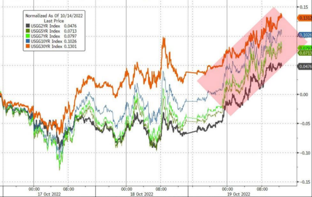 對美聯儲強硬加息的預期進一步激化了對經濟衰退的擔憂,驅動美債收益率全線走高。