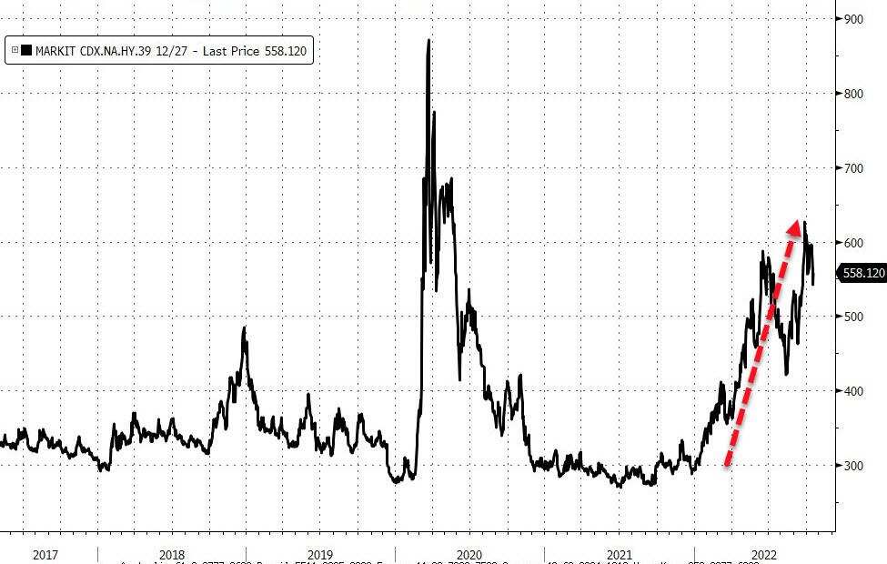 隨著美聯儲帶領的全球央行加息潮繼續推進,美國垃圾債的信用利差已經升至疫情爆發以來的最高水平。