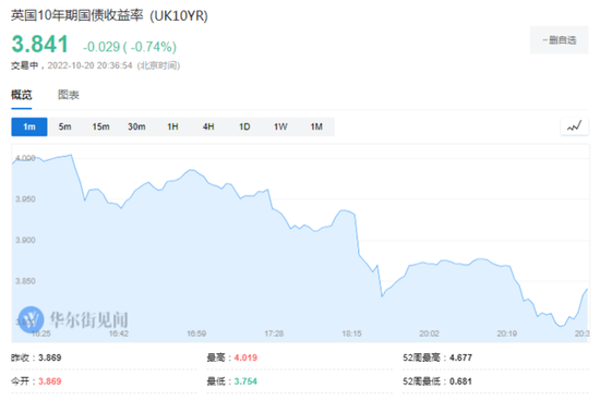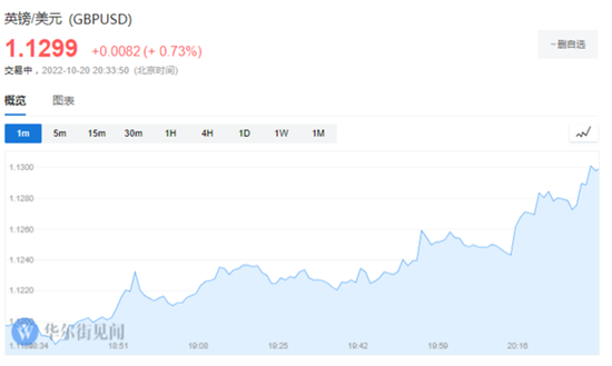 媒體報導稱,英國首相特拉斯即將辭職。消息刺激英鎊兌美元短線拉升20餘點,英國國債漲幅擴大,10年期國...