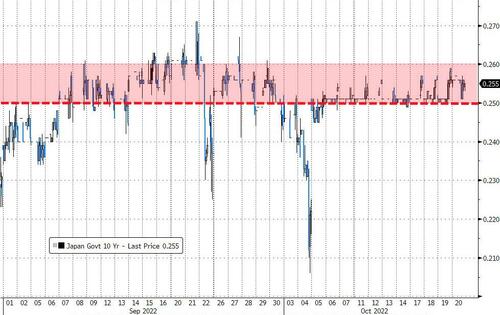 正如圖下圖中所示的那樣,市場力量逾越0.25%的日債收益率上限,屢屢測試日本央行決心的行動,在過去一個多月的時間里已反覆上演。