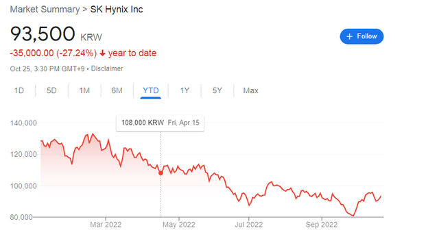 近幾個月來,由於通脹飆升和利率走高迫使消費者和企業客戶削減支出,全球晶元需求大幅降溫,海力士股價今年已下跌27%。