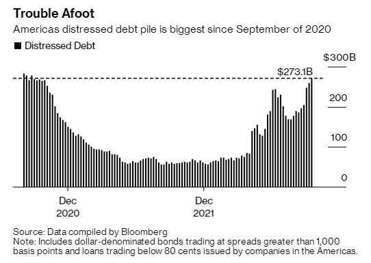 不斷增長的不良債務(定義為收益率高於美國國債至少10個百分點的債券,或貸款的轉手價格低於面值的80%)表明,投資者對持有風險公司債務要求更高的回報。