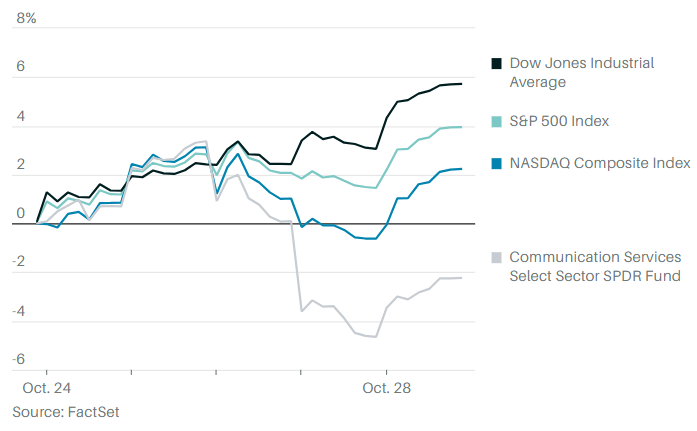 上週,美股市場三大股指均實現累計上漲。$道瓊斯(32732.9492, -128.85, -0.39%)指數(.DJI.US)$上漲5.7%,該指數連續第四周上漲,上週$標普500指數(.SPX.US)$和$納斯達克(10988.1459, -114.31, -1.03%)綜合指數(.IXIC.US)$的漲幅分別為4%和2.2%。