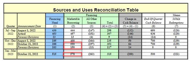 這還沒完,美國財政部對2023年1-3月當季借款的初步估計顯示,預計將新增借款5780億美元,預計明年3月底現金餘額為5000億美元。