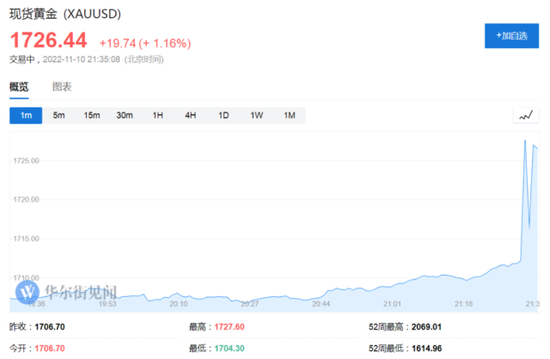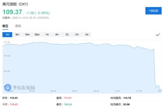 受美國10月CPI數據低於預期影響,美股期貨短線飆升,納指期貨漲近3.5%。