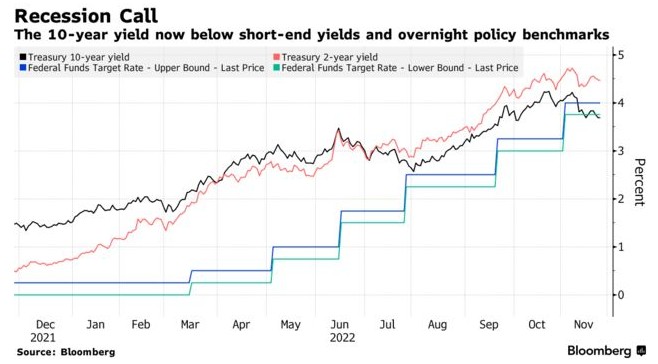 債券市場正在為美國經濟將在明年陷入衰退做準備。 交易員押注,雖然美聯儲仍忙於加息,但長期利率勢將下行。