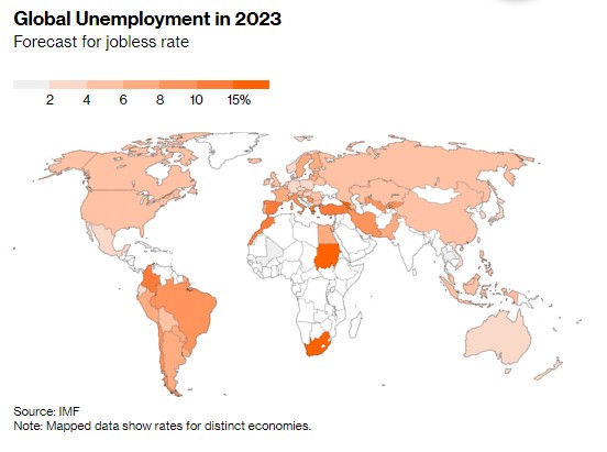 所有這一切意味著,儘管商品和服務的需求減弱,許多企業仍在囤積勞動力,他們知道一旦經濟開始再次加速,就會需要這些工作力。 亞馬遜(93.950.54, 0.58%, )(AMZN. US)、高盛(382.36-6.50, -1.67%, ) 等公司最近有很多高調的裁員公告,但他們可能被證明是異類。 預測顯示,到2024年,發達經濟體的失業人數將增加約330萬,預計在此期間大多數經濟體將遭遇衰退。 雖然將面臨一個巨大的失業數位,但比2001年開始的相對溫和的衰退時期減少的510萬雇傭人數要少,而且與過去兩次全球衰退的規模相比也相形見絀。