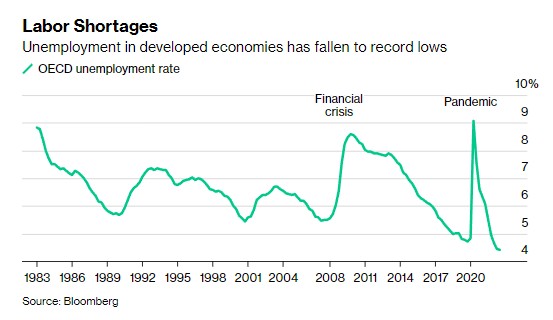 一個世紀以來世界上最嚴重的公共衛生危機無疑擾亂了勞動力流動,迫使澳大利亞等國尋求增加移民。 此外,美國和英國的工作力市場參與度仍低於疫情前水準。 紐西蘭中央銀行行長表示:「這是一個競爭異常激烈的市場。 勞動力市場的動盪程度高得令人難以置信。 市場競爭非常激烈。 ”