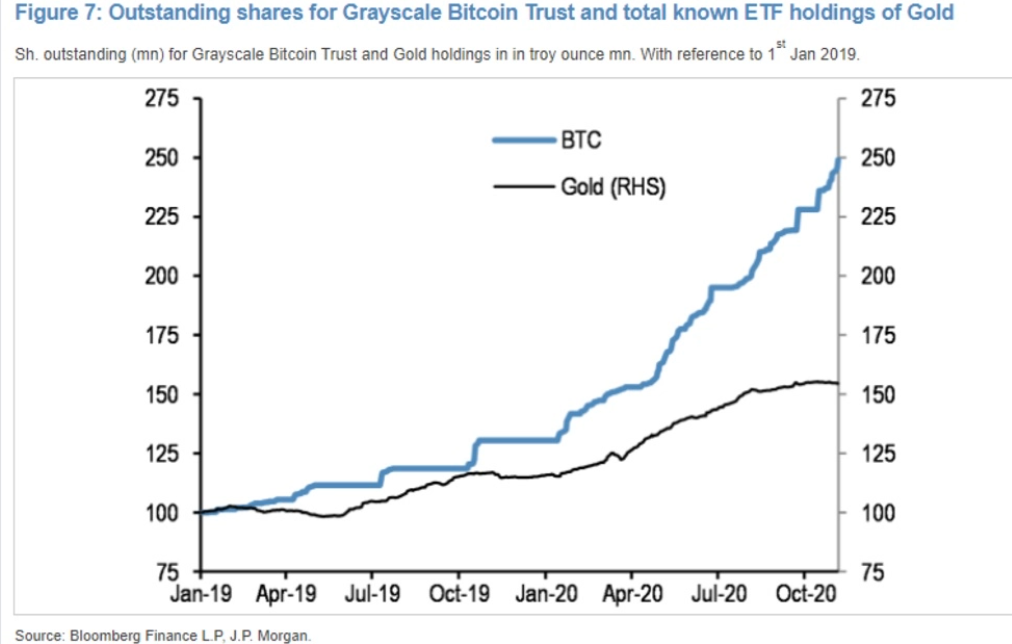小摩指出,比特幣似乎開始蠶食對黃金ETF的需求,一些之前投資黃金ETF的投資者如家族辦公室,開始放棄黃金ETF轉而購買比特幣。當前比特幣已突破16000美元大關,刷新2018年1月以來新高。