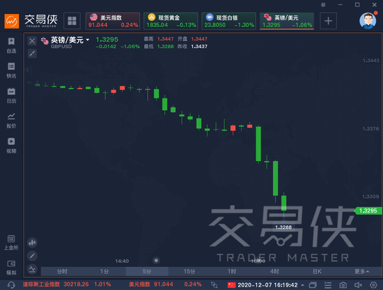 英鎊兌美元繼續擴大跌幅,日內跌幅達1%,失守1.33關口。