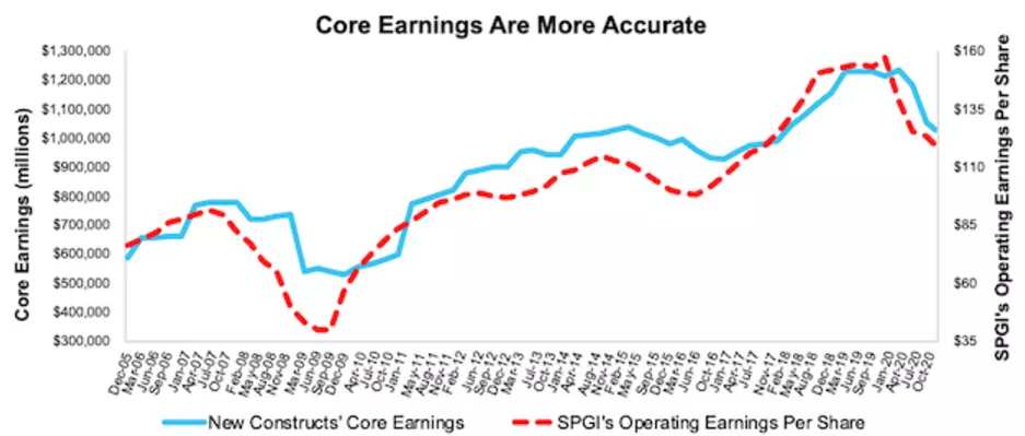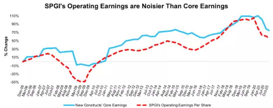 圖4:核心收益與標普全球的營業收益(2005年至今)