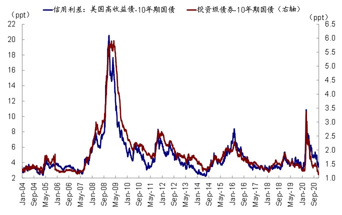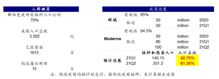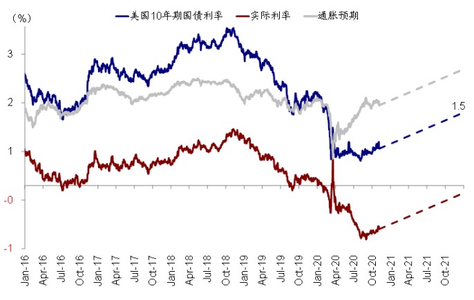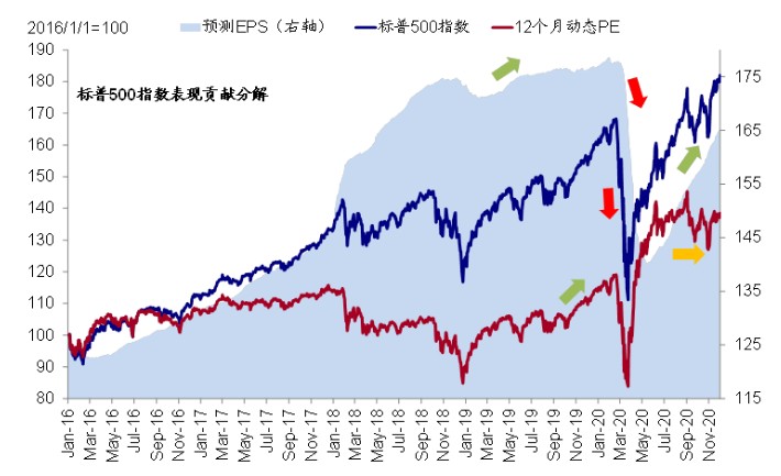 往前看,基本面因素依然是主導主要資產價格走勢的關鍵,例如雖然維持資產購買但美債利率將在增長復工推進和通脹抬升的推動下繼續走高(我們靜態測算10年美債水平約為1.5%,而美股市場也將更多在盈利修復的推動下仍有上行空間(靜態測算空間~7%,標普500指數~19%的盈利修復疊加~10%的估值消化)。