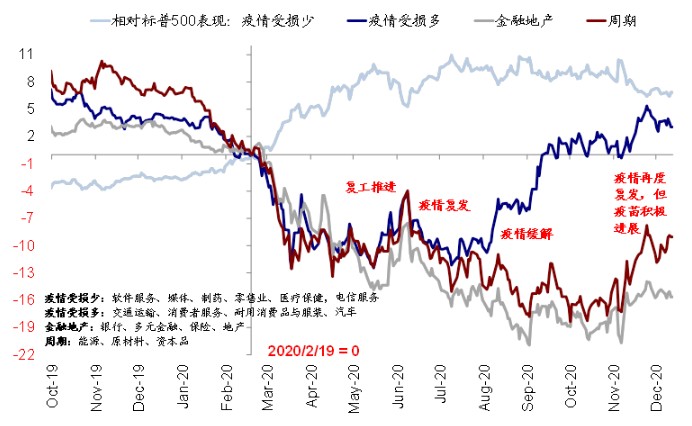 衛生事件、疫苗和財政刺激的進展將左右短期市場走勢:1)衛生事件:如果僅看衛生事件的話,當前美國正在面臨的第三波衛生事件嚴重程度要甚於以前過去一輪、對醫療資源的擠兌也愈發明顯;新增、住院、ICU、死亡都早已超出3月高點。因此,如果沒有11月以來多支疫苗積極進展的支撐,市場在這一背景下可能早已承壓。2)疫苗:上週末FDA批准輝瑞(PFE.US)首支疫苗在美國使用,具有重要“托底”意義,特別是對市場而言。但從衛生事件實際防控看,疫苗“遠水不解近渴”(最初疫苗分配將僅能覆蓋美國人口的一小部分,大規模接種可能要到明年),採取更多防控措施盡快壓平曲線依然是必要的,近期有包括紐約州在內的更多州加入更嚴格防控措施之列,這又會反過來拖累短期復工進展和經濟修復,例如最新的首申人數和11月零售消費超預期下滑都反應了新一波衛生事件的影響。3)財政刺激:衛生事件不斷升級也使得新一輪財政刺激的必要性和期待增加,近期國會關於新一輪抗疫刺激談判仍在進行,但如果本周無顯著進展的話,就可能要到明年初了。