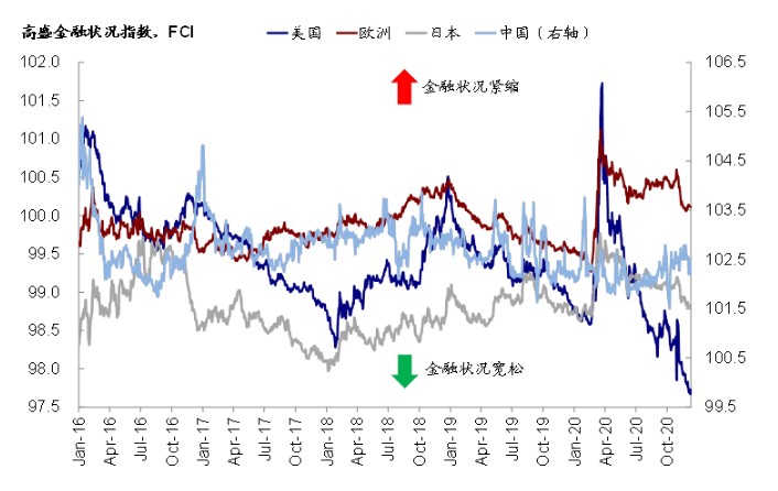 不過,反過來看,短期進一步加碼的政策必要性和緊迫性也沒那麼大,不然此次會議就會如部分市場預期那樣要不延長國債購買久期、要么增加購買規模了。其背後的原因在於,從各個維度來看當前市場金融條件都依然維持非常的寬鬆狀態,如實際利率依然明顯為負、金融條件指數和信用利差維持低位等等。
