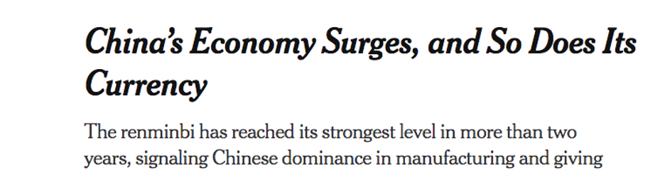 《紐約時報》指出,人民幣升值主要是因為在全球經濟遭到重創的情況下,中國經濟成為了一個罕見的亮點。