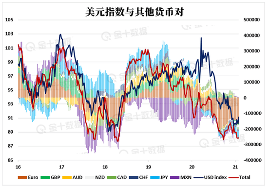 Rothko Research留意到,儘管近期美元指數大幅回升,但1月份美元的淨空頭倉位總量仍保持較高水平。