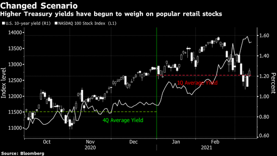 市場參與者現在關心歷史是否會重演。攔在多頭們面前的是上升的債券收益率,而這已經引發對大牌成長型股票的拋售,並最終會對基準股指造成束縛。