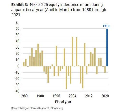 而日本之所以會在財年末大舉拋售非日元債券,是因為此前商業銀行持有大量股票,日經225指數2020財年又錄得幾十年來最好表現,收成已經足夠好,債券收入也就不那麼重要。這時候,日本商業銀行乾脆賣掉美國國債,遂不用承受美債收益率繼續上行,債券投資組合在財年末遭受資本損失的風險。