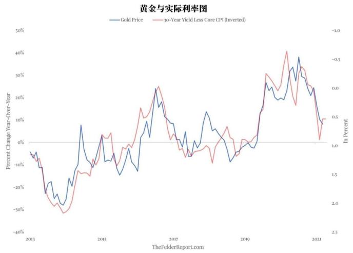 第一,黃金與實際利率(等於名義利率剔除通脹率)有著非常緊密的關係。