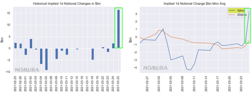 這就引發人們的擔憂,近期美國國債才剛剛經歷過一輪短期的大幅調倉,週五公佈的經濟數據可能會帶來再次拋售債券的風險。大家須尤其警惕下週一美股的行情。到那時候,已經進入4月了,是一個新的季度了,屆時養老基金將結束大幅調倉。