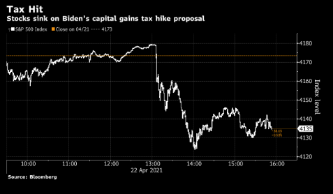 在彭博報導稱拜登計劃把富人資本利得稅稅率提高近一倍之後,美國股市應聲下跌,標普500指數一度下挫1.2%。不過相比該指數在過去13個月里高達85%的回報率,這一下跌不值一提,而且大多數機構投資者表示,他們將靜候該法案的進展,不會輕率採取行動。