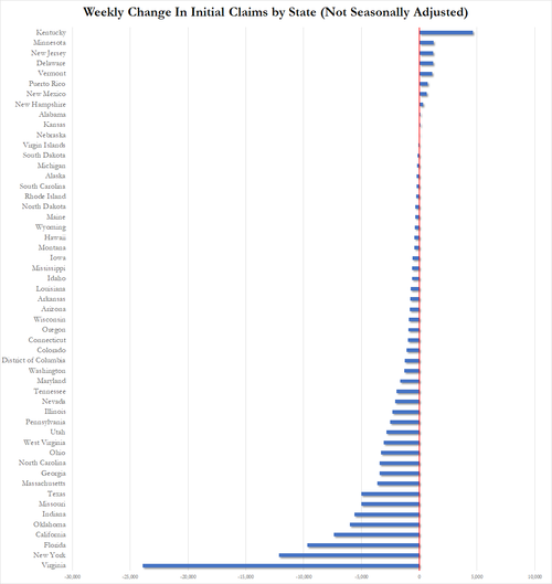 從美國勞工部的報告來看,上週肯塔基州首次申報人數增長最多,弗吉尼亞州和紐約州下降最多。