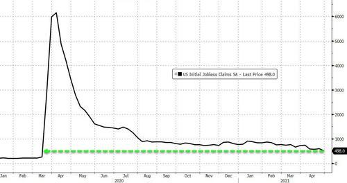 美東時間週四(5月6日)8點30分,市場聚焦的一份就業出爐:美國至5月1日當週首次申請失業救濟人數49.8萬人,預期53.8萬人,前值55.3萬人。
