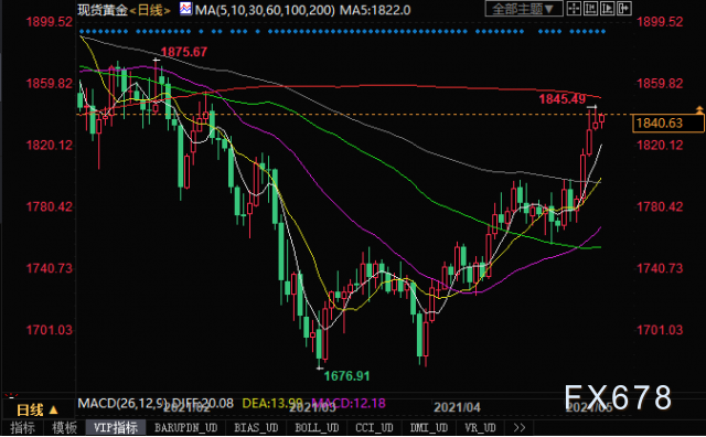 荷蘭銀行(ABN Amro NV)高級貴金屬策略師博埃爾(Georgette Boele)表示:“通脹預期已經升高,並將繼續走低。金價在接近每盎司1850美元的200日移動均線下方失去上漲動力。”